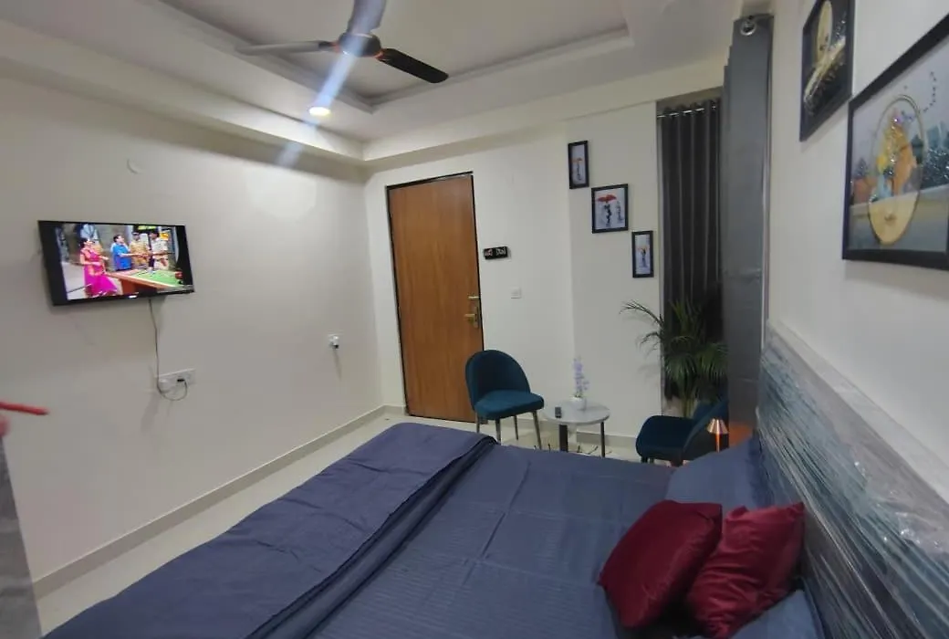 The self-catering facilities feature a full kitchen including a refrigerator. This apartment is in close proximity to Malviya Nagar Sector 10 bus stop.